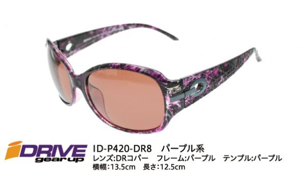 ID-P420-DRBK5 グリーン系 レンズ:DRBKブラック フレーム:ブラック/グリーン テンプル:ブラック/グリーン ID-P420-DR8 パープル系 レンズ:DRコパー フレーム: デミパープル テンプル: デミパープル ID-P420-DR4 レッド系 レンズ:DRコパー フレーム: ダークレッド/ピンク テンプル: ダークレッド/ピンク |