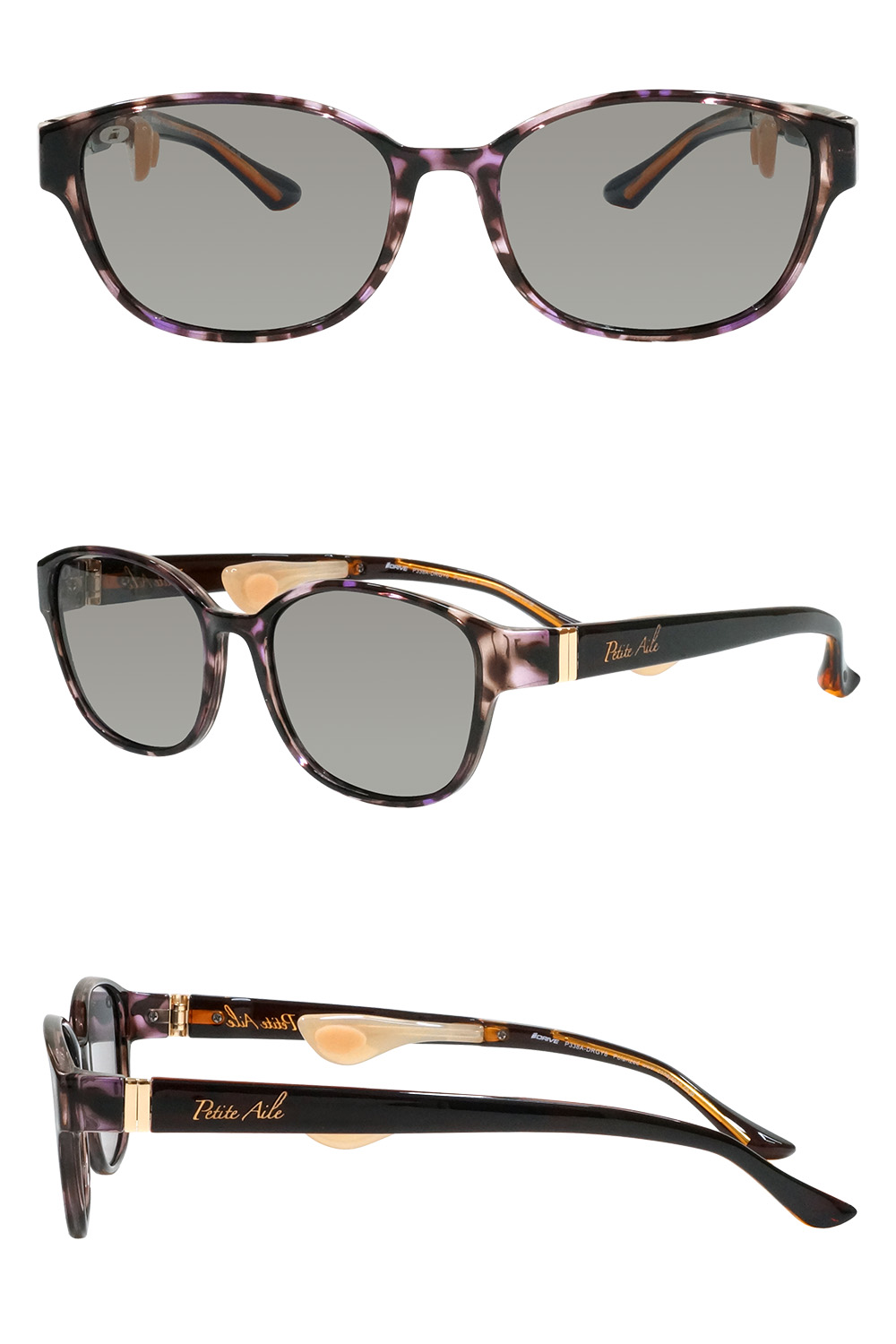 | カラーバリエーション | ID-P338A-DRGY8 パープル系 レンズ: DRGNYライトグレー フレーム: クリアデミパープル テンプル: クリアブラウン ID-P338A-DRBR4 レッド系 レンズ: DRBRブラウン フレーム: クリアレッド テンプル: クリアレッド |