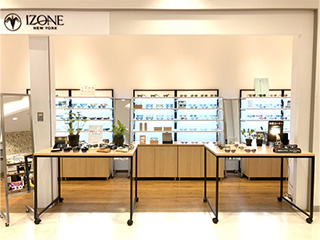 NEOPASA駿河湾沼津(上)の外観は、まるでアミューズメントパークのようです。入口入ってすぐのところに位置するIZONE Shopは、屋内ワゴンカートの形態になります。